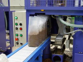 袋に原材料を入れて菌床を作ります。